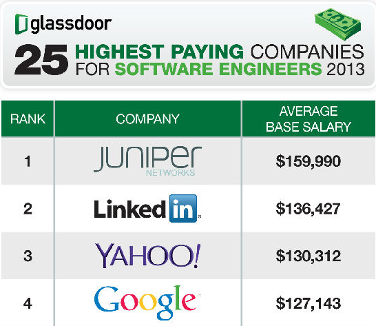 另外,一些著名的公司并未挤进前25名,如戴尔(9.97万美元)、Citrix Systems(9.66万美元)、德州仪器(9.37万美元)以及EMC(9.16万美元)。